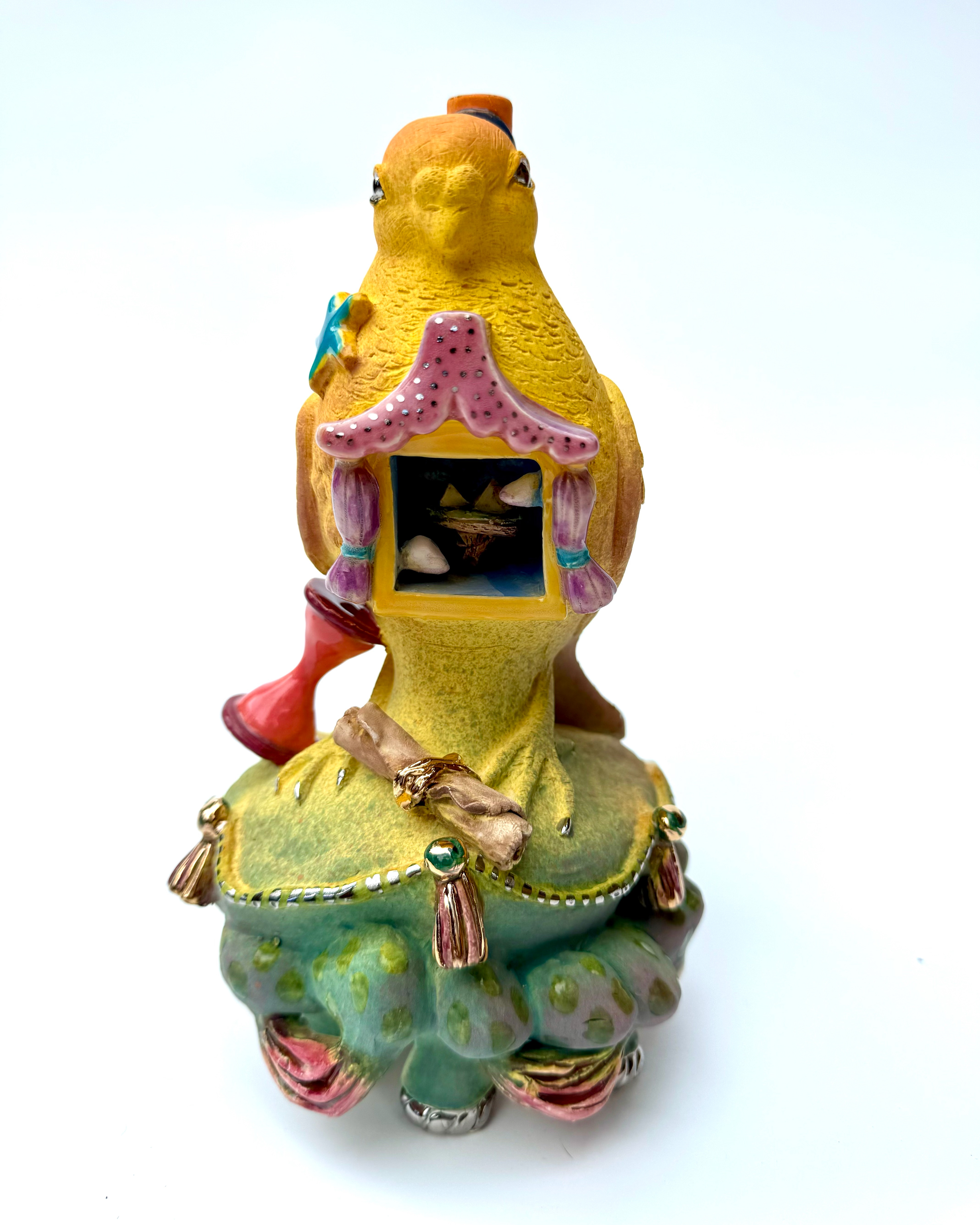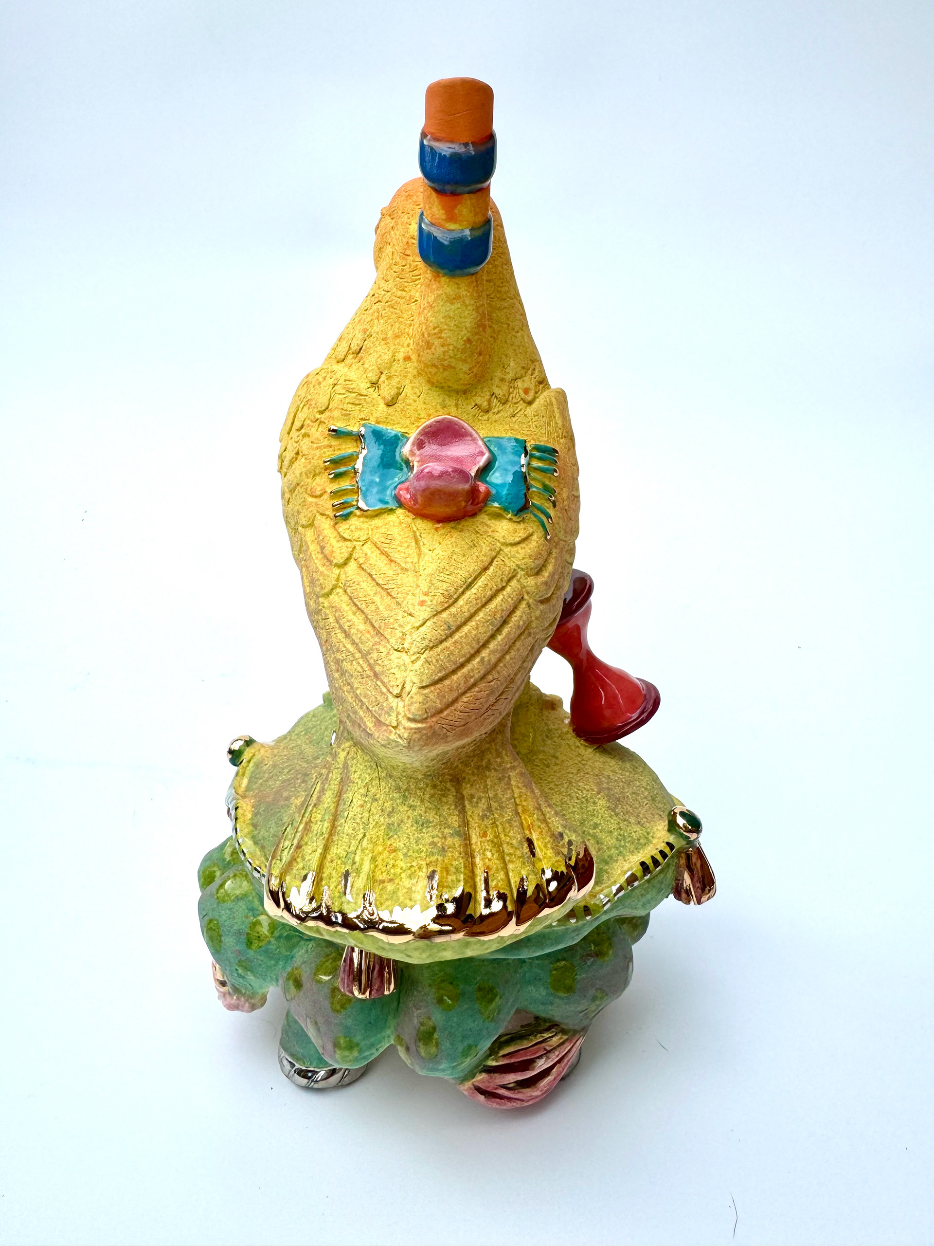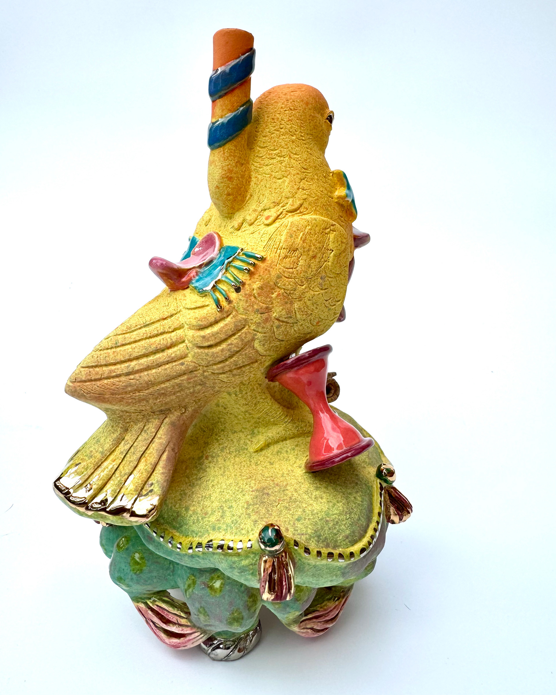 Stoneware clay, Glaze, Underglaze, Luster. 9 x 5 x 6 in.