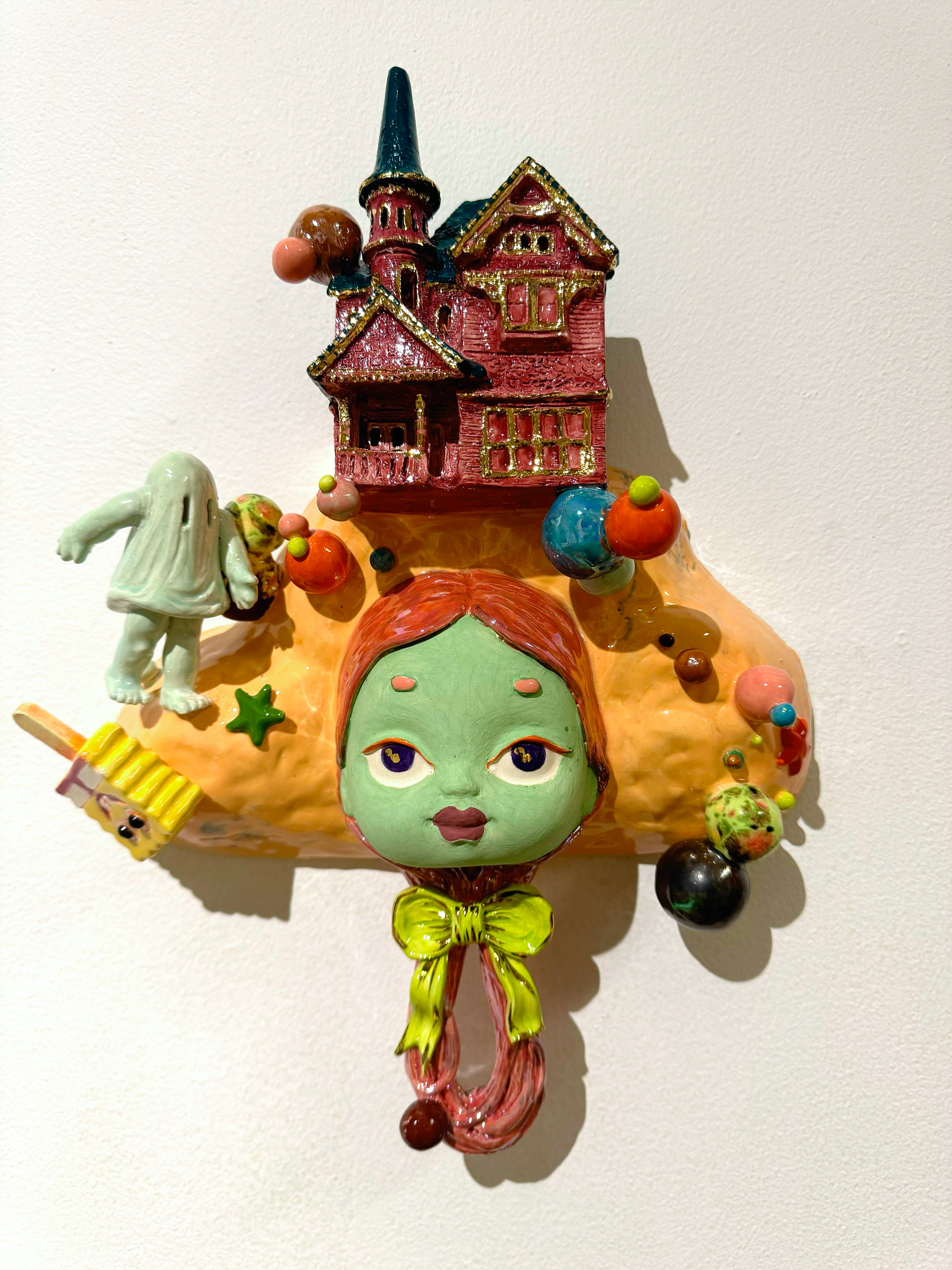 Stoneware clay, Glaze, Underglaze, Glass, Luster. 14 x 10.5 x 3.5 inches.