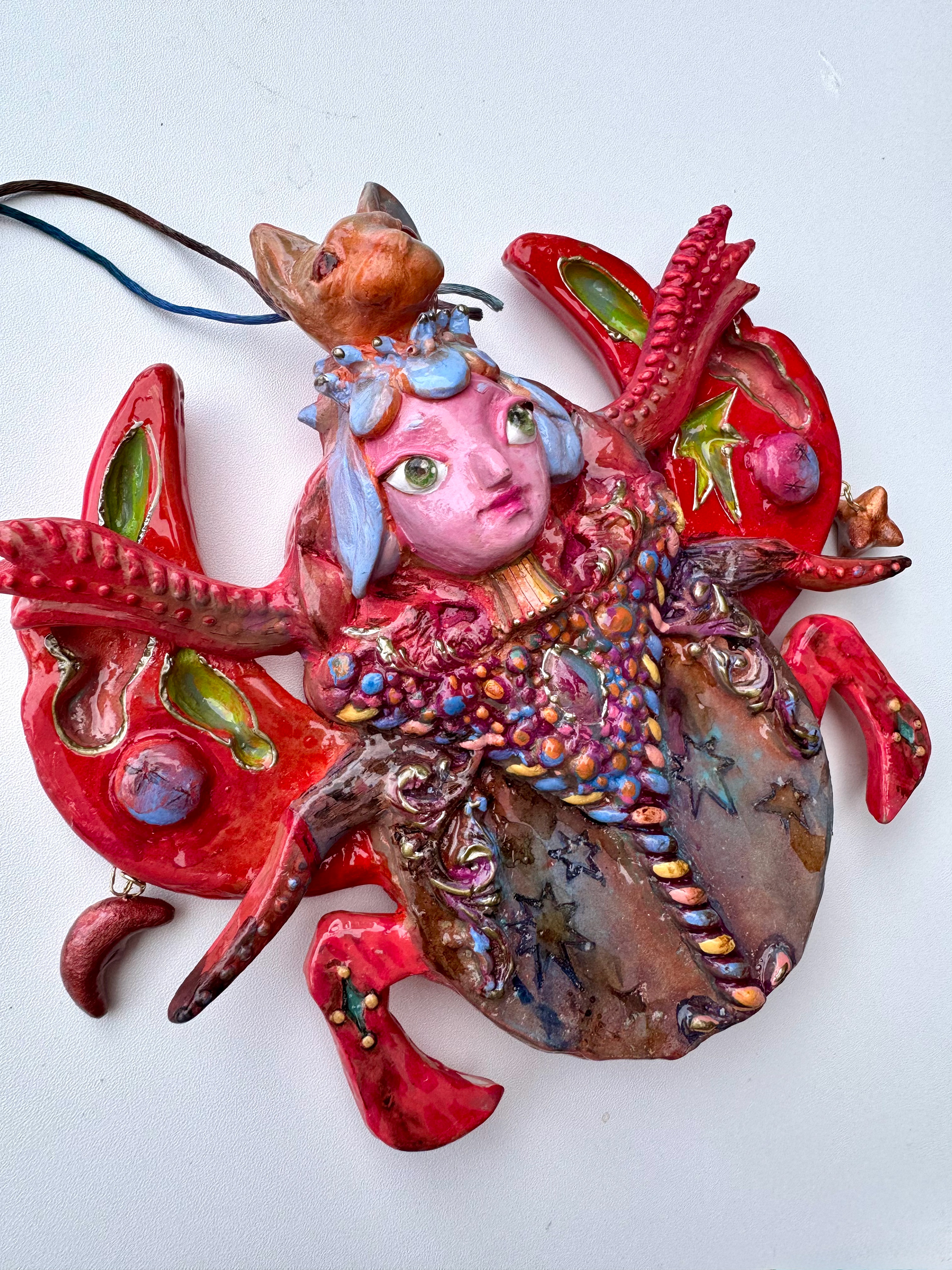 Earthenware Clay, Acrylic Paint, Resin, Wire. 8" x 6" x 3" inches.