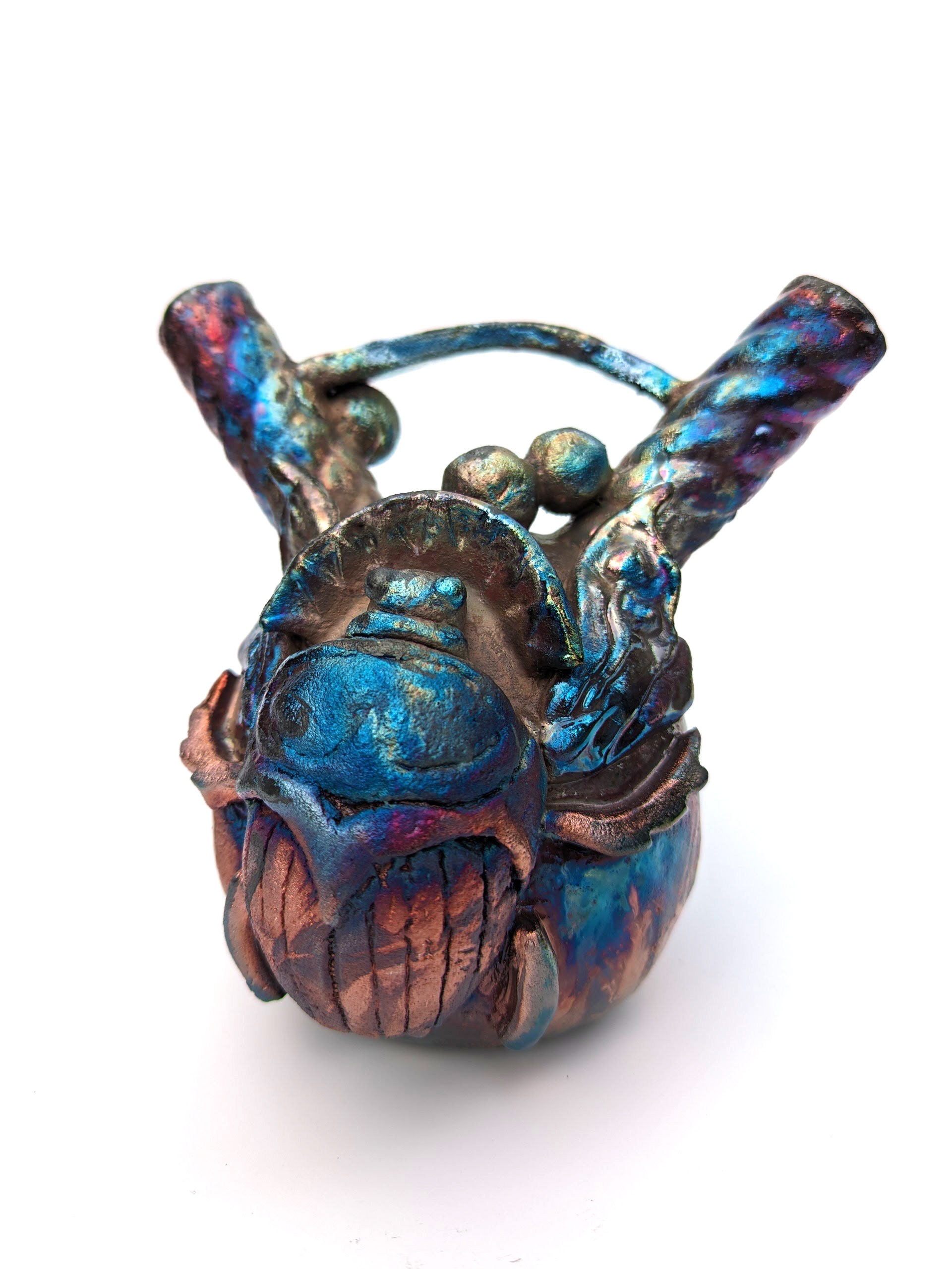 Stoneware clay, Glaze, Raku Fired. 7 x 6 x 7.5 inches.