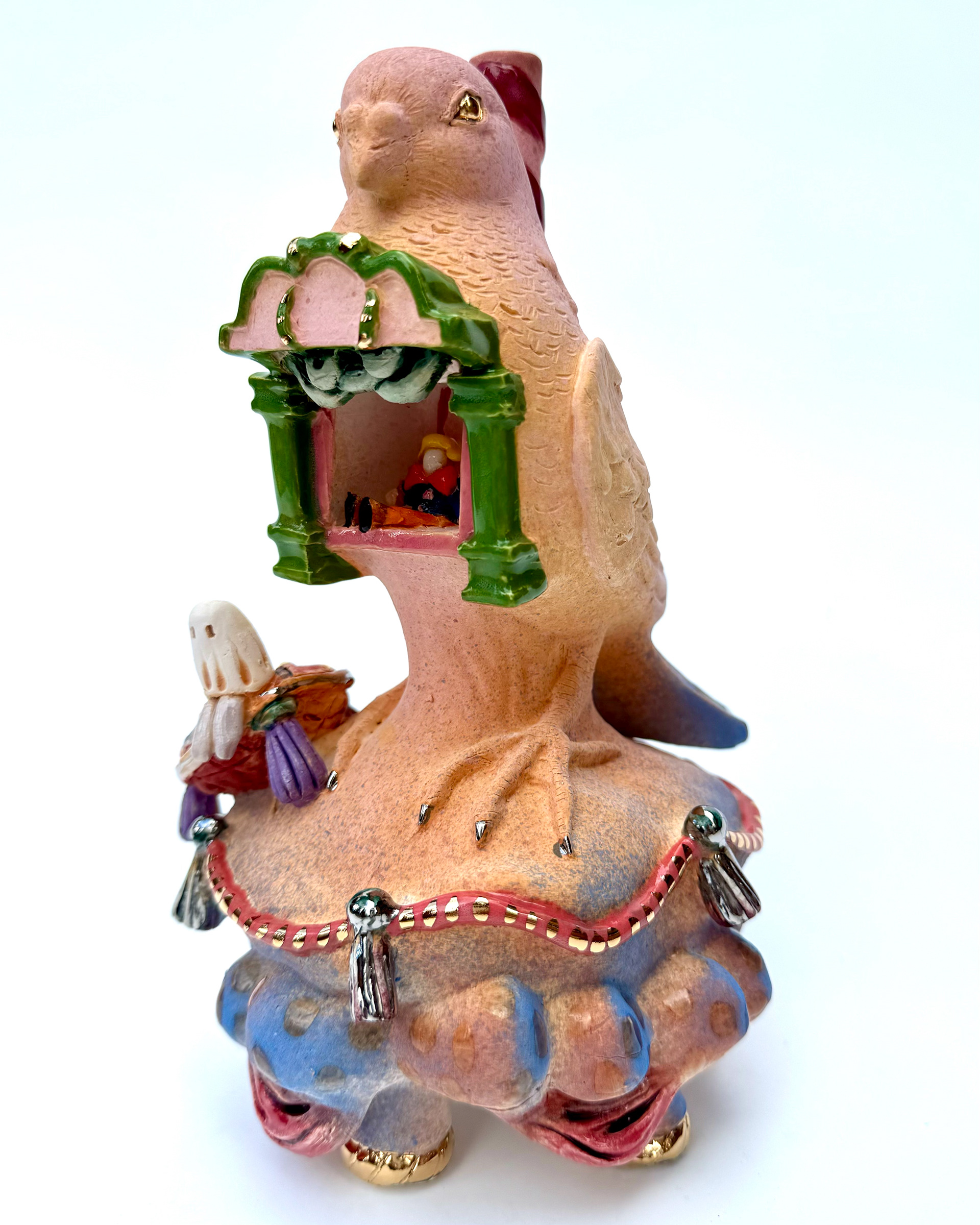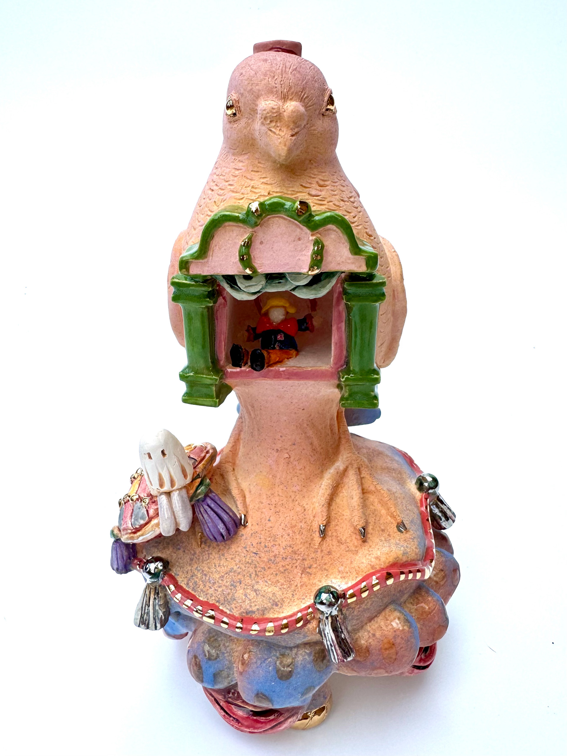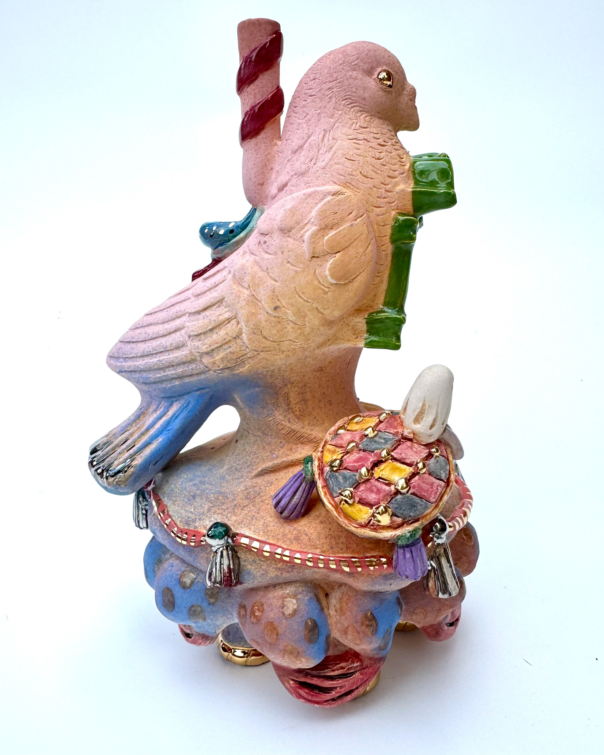 Stoneware clay, Glaze, Underglaze, Luster. 9 x 5 x 6 in.