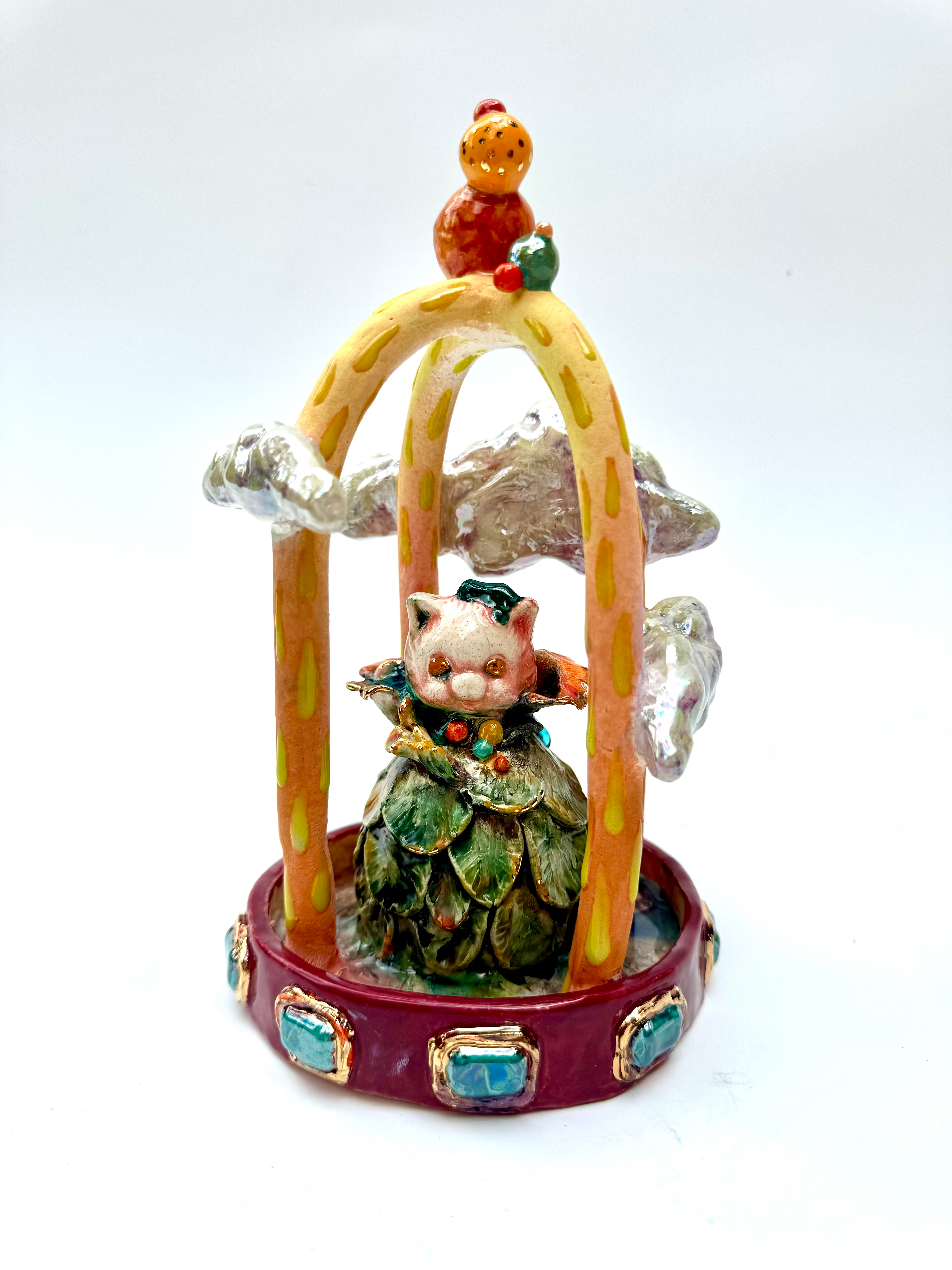 Stoneware clay, Glaze, Underglaze, Glass, Luster. 8 x 5 x 5 inches *